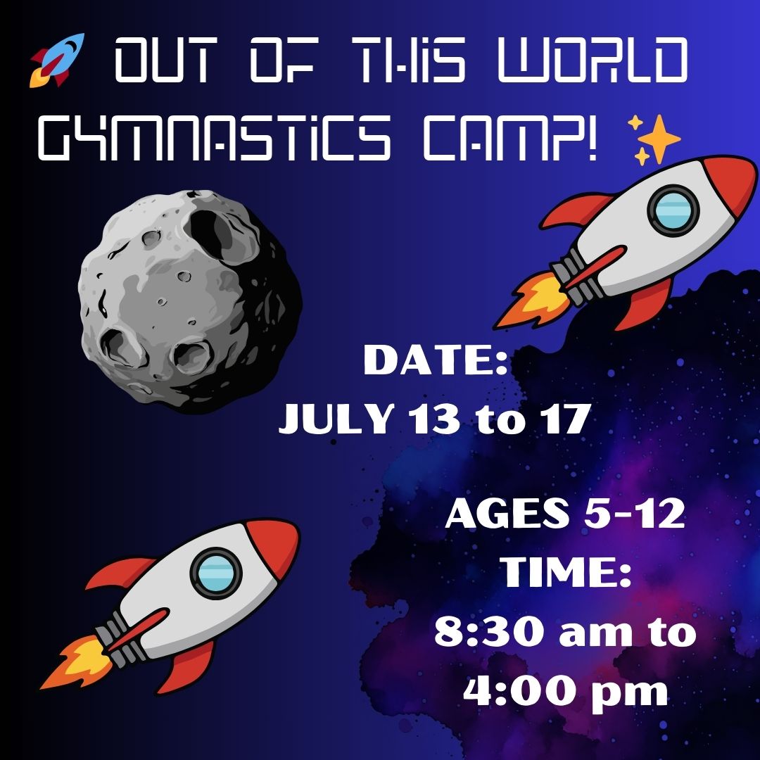 Blast off into a fun-filled camp where gymnastics meets space and science! Campers will flip, tumble, and train through space-themed courses, then get creative with space crafts and hands-on science experiments inspired by the universe. Perfect for active kids with big imaginations—this camp is truly out of this world!