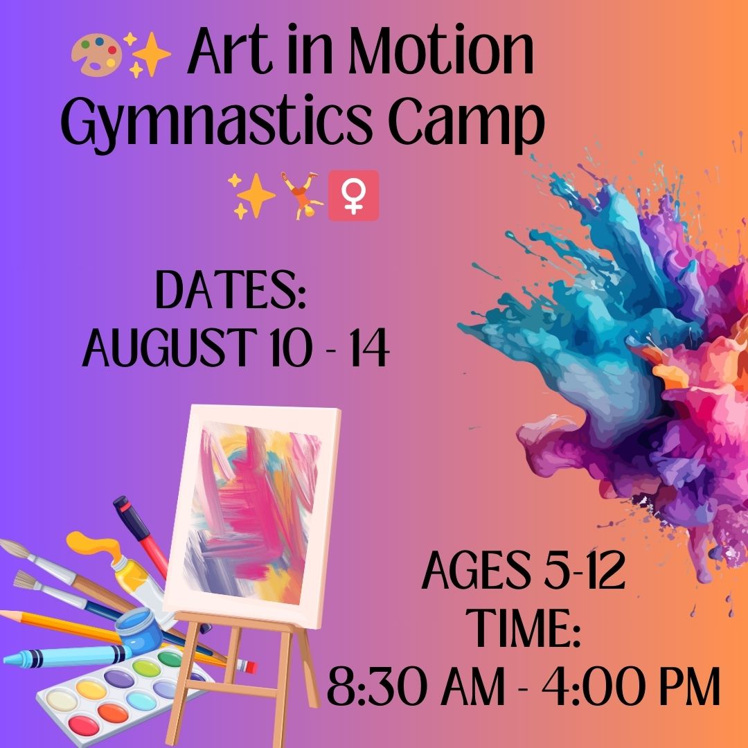 Where creativity meets movement! At Art in Motion Gymnastics Camp, kids will explore different forms of arts and crafts and bring that same creativity into the gym. From expressive movement and imaginative obstacle courses to colorful projects, campers will learn that gymnastics is another form of art in motion. Perfect for creative minds that love to move!