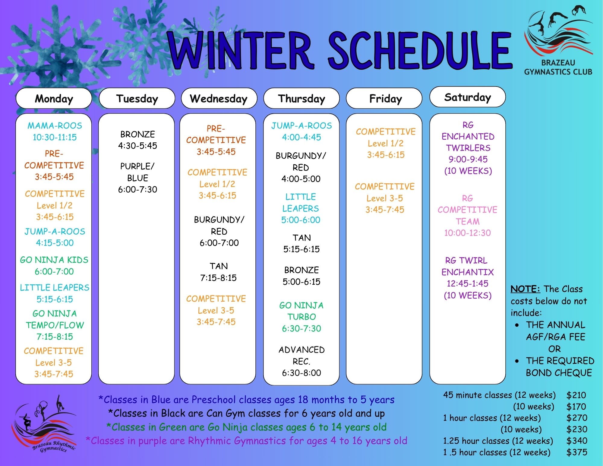 There are more details about the recreational program available here or if you are interested in a specific program, please click the red text below for more details.